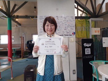 2026.03.05 03/05(木) 女子シングルス 中級 優勝<トマトインドアテニスクラブ> ギューシロウさん、優勝おめでとうございます(^O^) 【優勝者コメント】 シングルスを楽しんでプレイ出来るまで続けたいと思います。 拍手2