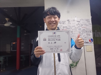 2026.03.04 03/04(水) 男子シングルス 中上級 優勝<トマトインドアテニスクラブ> 三上祥さん、優勝おめでとうございます(^O^) 【優勝者コメント】 6回出てやっと勝ちました! もう少し攻撃力を上げます! 拍手6
