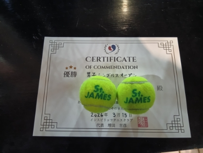2026.03.16 03/16(月) 男子シングルスオープン 優勝<インスピリッツテニスクラブ> 柏木流音さん、優勝おめでとうございます(^O^) 【優勝者コメント】 やっぱりシングルス最高! 拍手0