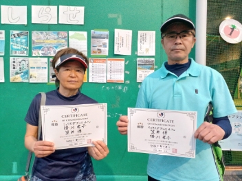 2026.04.19 04/19(日) ミックスダブルス 中級 優勝<ファンテニススクール八潮> 鳥塚淳子さん、田中晋さん、優勝おめでとうございます(^O^) 【優勝者コメント】 鳥塚さん 「試合ができて楽しかったです。 ペアのおかげで勝利できました。」 田中さん 「ペアのおかげで勝てました。」 拍手4