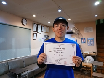 2026.04.19 04/19(日) 男子シングルス 中級 優勝<ジャクパ狭山総合グランド> 濱埜翼さん、優勝おめでとうございます(^O^) 【優勝者コメント】 優勝できて大変うれしいです! 次も勝てるようがんばります。 拍手6