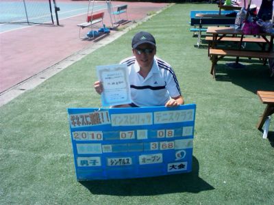 2010.07.04 男子シングルス 大宮運動場 07/04(日) 男子シングルス 超初級 優勝<大宮運動場> 畑中賢人さん、優勝おめでとうございます(^O^) 【優勝者コメント】 次は初級で頑張ります! 拍手0