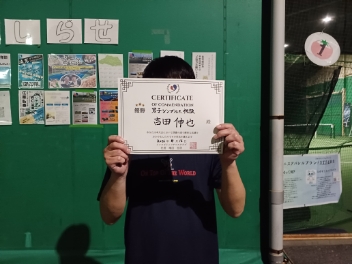 2026.04.12 男子シングルス トマトインドアテニスクラブ 04/12(日) 男子シングルス 初級 優勝<トマトインドアテニスクラブ> 吉田伸也さん、優勝おめでとうございます(^O^) 【優勝者コメント】 次は初中級で頑張りたいです! 拍手3