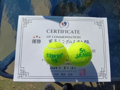 2026.03.11 03/11(水) 男子シングルス オープン 優勝<インスピリッツテニスクラブ> 池田将晃さん、優勝おめでとうございます(^O^) 【優勝者コメント】 再来週の出場試合に向けていい準備ができてます。 毎週試合出場継続します! 拍手12