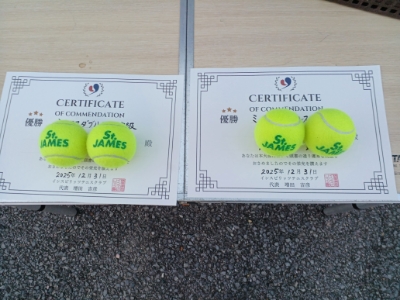 2025.12.31 ミックスダブルス インスピリッツテニスクラブ 12/31(水) ミックスダブルス 中級 優勝<インスピリッツテニスクラブ> 三ッ橋亜季子さん、佐藤佳弘さん、優勝おめでとうございます(^O^) 【優勝者コメント】 やったー!頑張った。 拍手4