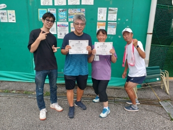 2025.09.06 ミックスダブルス テニスハレ大宮 09/06(土) ミックスダブルス 初中級 優勝<テニスハレ大宮> インスピAさん、インスピBさん、優勝おめでとうございます(^O^) 【優勝者コメント】 暑い中頑張りました! 拍手10