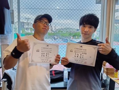 2025.10.05 男子ダブルス インスピリッツテニスクラブ 10/05(日) 男子ダブルス 初中級 優勝<インスピリッツテニスクラブ> 永瀬菊彌さん、熊谷直宏さん、優勝おめでとうございます(^O^) 【優勝者コメント】 永瀬さん 「パートナーに感謝です!僕もいつもの仲間に感謝です!」 熊谷さん 「いつもの仲間に感謝です!」 拍手10