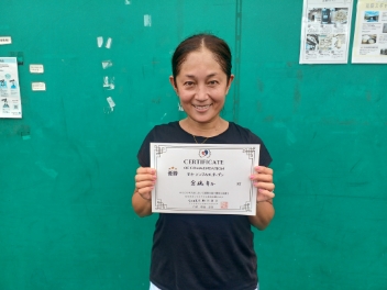 2025.09.23 女子シングルス ファンテニススクール八潮 09/23(火) 女子シングルス 中級 優勝<ファンテニススクール八潮> Tucatsさん、優勝おめでとうございます(^O^) 【優勝者コメント】 やっと勝てました!! うれしいです! 拍手6