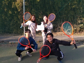 2026.01.31 01/31(土) 団体戦 中級〜オープン 優勝<インスピリッツテニスクラブ> チーム他力本願さん(佐藤健さん、花川怜美さん、甲斐夕月さん、諸我良太さん)優勝おめでとうございます(^O^) 【優勝者コメント】 お前のミスはお前のもの、お前のエースは俺のもの 他力って最高。(佐藤の試合中の発言より抜粋) 拍手4