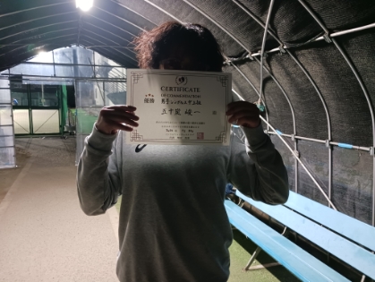 2026.01.31 01/31(土 ) 男子シングルス 初中級 賞品付 ※さいたまスポーツ コミッション主催Sフィールドカップ 優勝<大宮運動場> 菊留毅さん、優勝おめでとうございます(^O^) 【優勝者コメント】 強風に耐えて頑張りました 拍手2