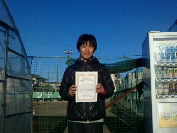 2015.01.13 男子シングルス 大宮運動場 01/12(月) 男子シングルス 上級 優勝<大宮運動場> 中務敦史さん、優勝おめでとうございます(^O^)【優勝者コメント】今日はめでたい成人式!大人のテニスで優勝! 拍手0
