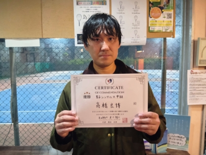2026.02.15 男子シングルス テニスハレ大宮 02/15(日) 40歳以上 男子シングルス 初級~初中級 優勝<テニスハレ大宮> 髙橋悠さん、優勝おめでとうございます(^O^) 【優勝者コメント】 今年初Vいけました! 拍手15