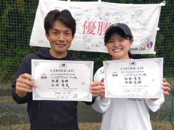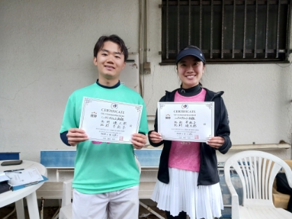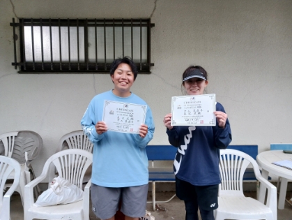 2026.04.29 04/29(水) ミックスダブルス 中上級 優勝<インスピリッツテニスクラブ> 斉藤勇輝さん、松岡優実さん、優勝おめでとうございます(^O^) 【優勝者コメント】 斉藤さん 「いぇいに感謝!」 松岡さん 「いぇい✌」 拍手5