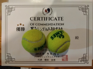 2025.07.17 男子シングルス インスピリッツテニスクラブ 07/17(木) 男子シングルス 中上級 優勝<インスピリッツテニスクラブ> 山城翔也さん、優勝おめでとうございます(^O^) 【優勝者コメント】 楽しかったです。 拍手5
