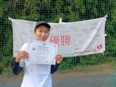 2025.10.23 女子シングルス インスピリッツテニスクラブ 10/23(木) 女子シングルス オープン 優勝<インスピリッツテニスクラブ> 山本貴三香さん、優勝おめでとうございます(^O^) 【優勝者コメント】 凌駕のおかげで勝てました! 拍手13