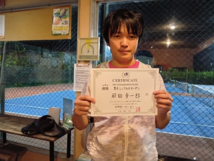 2025.11.02 男子シングルス 西武ドームテニスコート 11/02(日)男子シングルス オープン 優勝<西武ドームテニスコート> 曽我部雄太さん、優勝おめでとうございます(^O^) 【優勝者コメント】 今日は運が良かったです。 でも諦めずにやって良かったです! 拍手4