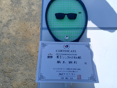 2025.11.08 男子シングルス 大熊テニスクラブ 11/08(土) 男子シングルス 中上級 優勝<大熊テニスクラブ> 鈴木誠則さん、優勝おめでとうございます(^O^) 【優勝者コメント】 オープンで優勝したいです! 拍手4