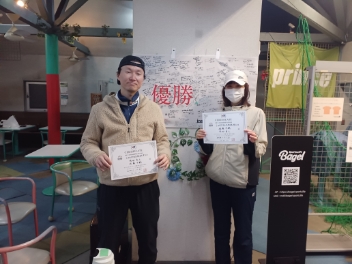 2026.01.02 01/02(金) ミックスダブルス 初級 賞品付 優勝<トマトインドアテニスクラブ> 岡田真人さん、佐藤千鶴さん、優勝おめでとうございます(^O^) 【優勝者コメント】 5-5の一本勝負のプレッシャー乗り越えました 拍手7