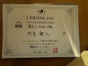 2026.01.02 01/01(木) 男子シングルス 中上級 賞品付 優勝<東大宮テニスクラブ> 大浦高明さん、優勝おめでとうございます(^O^) 【優勝者コメント】 今年もよろしくお願いします。 拍手2
