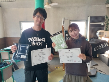 2026.01.02 ミックスダブルス 東大宮テニスクラブ 01/02(金) ミックスダブルス オープン 賞品付 優勝<東大宮テニスクラブ> 後藤優花さん、後藤永吉さん、優勝おめでとうございます(^O^) 【優勝者コメント】 優花さん 「2026年、初勝利!!」 永吉さん 「タオル、うれしい!」 拍手6