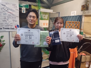 2026.01.02 ミックスダブルス テニスラウンジ上尾 01/02(金)ミックスダブルス 中級 賞品付 優勝<テニスラウンジ上尾> 佐藤佳弘さん、三ッ橋亜季子さん、優勝おめでとうございます(^O^) 【優勝者コメント】 良い新年のスタートです! 拍手4