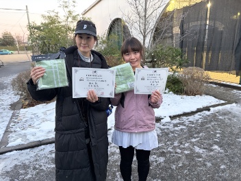 2026.01.03 女子ダブルス 東大宮テニスクラブ 01/03(土) 女子ダブルス オープン 優勝<東大宮テニスクラブ> 清水彩さん、木村彩花さん、優勝おめでとうございます(^O^) 【優勝者コメント】 清水さん 「ダブルス優勝うれしいです! 今年もがんばります。」 木村さん 「W優勝嬉しいです! 1日楽しめました!!」 拍手17