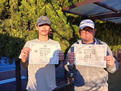 2026.01.04 男子ダブルス インスピリッツテニスクラブ 01/04(日) 男子ダブルス 初中級 優勝<インスピリッツテニスクラブ> 桑原慶さん、岩崎柾典さん、優勝おめでとうございます(^O^) 【優勝者コメント】 桑原さん 「幸いしました!」 岩崎さん 「いいスタートが切れてとても嬉しいです!!」 拍手3