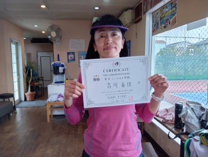 2026.03.25 03/25(水) 女子シングルス 中級 優勝<ファンテニススクール八潮> 吉川春佳さん、優勝おめでとうございます(^O^) 【優勝者コメント】 久しぶりの優勝うれしいです。 オープンで勝てるようがんばります。 拍手3