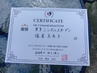 2026.04.15 04/15(水) 女子シングルス オープン 優勝<ファンテニススクール八潮> 上條円さん、優勝おめでとうございます(^O^) 【優勝者コメント】 目標にしていたオープン、優勝できてうれしいです!! 拍手7