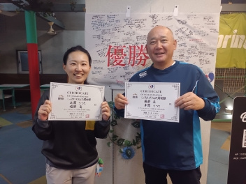 2026.04.25 ミックスダブルス トマトインドアテニスクラブ 04/25(土) ミックスダブルス 超初級 優勝<トマトインドアテニスクラブ> 本間さつきさん、堀部岳さん、優勝おめでとうございます(^O^) 【優勝者コメント】 本間さん 「やっと、優勝できました!(笑)」 堀部さん 「相方のおかげ、ありがとう!!」 拍手12