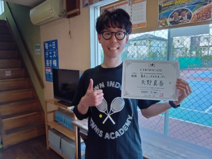 2025.09.24 男子シングルス ファンテニススクール八潮 09/24(水) 男子シングルス オープン 優勝<ファンテニススクール八潮> 天野真吾さん、優勝おめでとうございます(^O^) 【優勝者コメント】 初出場で優勝できて最高です! 拍手9