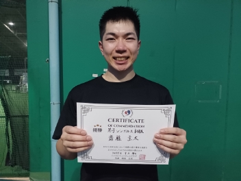 2025.09.19 男子シングルス トマトインドアテニスクラブ 09/19(金) 男子シングルス 初級 優勝<トマトインドアテニスクラブ> 齋藤圭太さん、優勝おめでとうございます(^O^) 【優勝者コメント】 初戦0-5、決勝0-3から挽回できて、諦めない大事さを知りました! 拍手9
