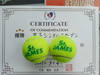 2025.09.04 男子シングルス インスピリッツテニスクラブ 09/04(木) 男子シングルス オープン 優勝<インスピリッツテニスクラブ> ストリング侍さん、優勝おめでとうございます(^O^) 【優勝者コメント】 雨に強いです! 拍手6