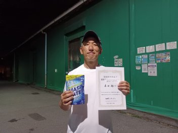2025.09.03 トマトインドアテニスクラブ 09/03(水)凌駕CUPインスピリッツインドアオープンベテラン(9月) 55歳以上 シングルス 優勝<トマトインドアテニスクラブ> 津止孝太さん、優勝おめでとうございます(^O^) 【優勝者コメント】 また勝てるように練習頑張ります! 拍手6