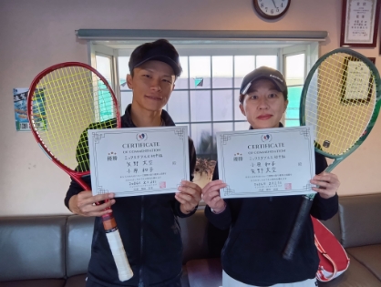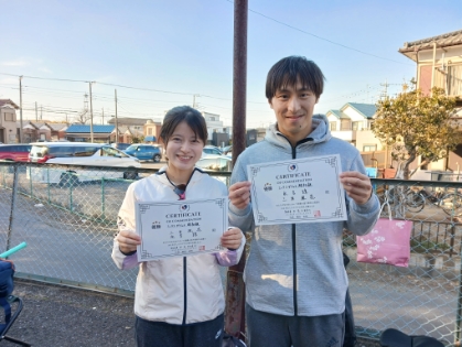 2026.02.21 02/21(土) ミックスダブルス 初中級 優勝<ファンテニススクール八潮> 矢野大空さん、小原和子さん、優勝おめでとうございます(^O^) 【優勝者コメント】 矢野さん 「絶不調でしたが、小原さんのお陰で勝てました。」 小原さん 「矢野さんの粘り強さのおかげで勝てました。次は中級勝ちましょう!」 拍手3