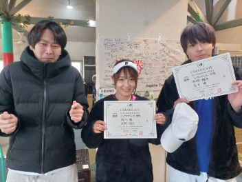 2026.01.20 01/20(火) ミックスダブルス 初級 優勝<トマトインドアテニスクラブ> 高木瞳さん、平野翔太さん、優勝おめでとうございます(^O^) 【優勝者コメント】 高木さん 「ペアのおかげで優勝できました!!ミックス初優勝嬉しいです!皆様ありがとうございました!!」 平野さん 「相方に助けられながら初優勝できました!ありがとうございました!!」 拍手1