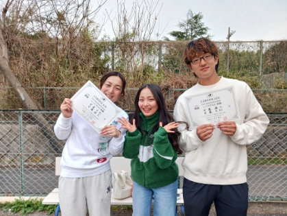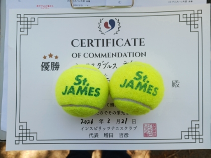2026.03.21 ミックスダブルス テニスハレ大宮 03/21(土) ミックスダブルス 超初級 優勝<テニスハレ大宮> 樋口修一さん、根本瑛里さん、優勝おめでとうございます(^O^) 【優勝者コメント】 初めての大会参加でしたが、楽しくテニスができ試合経験が積めて良い機会となりました。更にレベルアップめざして頑張ります。 拍手1