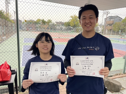 2026.03.22 ミックスダブルス 松戸テニスクラブ 03/22(日) ミックスダブルス 中級 優勝<松戸テニスクラブ> 宮崎澪さん、三輪哲也さん、優勝おめでとうございます(^O^) 【優勝者コメント】 中級引退です! 拍手4