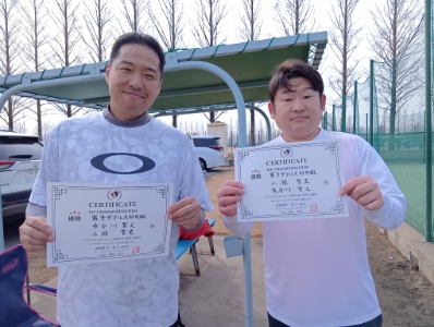 2026.02.22 男子ダブルス 大宮運動場 02/22(日) 男子ダブルス 中上級 賞品付 ※さいたまスポーツコミ ッション主催Sフィールドカップ 優勝<大宮運動場> 田村渉さん、佐藤耀さん、優勝おめでとうございます(^O^) 【優勝者コメント】 ペアのサーブに助けられました。 拍手2