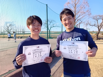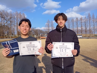2026.01.25 男子ダブルス 大宮運動場 01/25(日) 男子ダブルス 中上級 賞品付 ※さいたまスポーツコミ ッション主催Sフィールドカップ 優勝<大宮運動場> 神園渉太さん、山﨑広耀さん、優勝おめでとうございます(^O^) 【優勝者コメント】 神園さん 「優勝できて嬉しいです。オープンで次は優勝を目指します」 山﨑さん 「まさか優勝できるとは思っていなかったので嬉しいです。」 拍手2