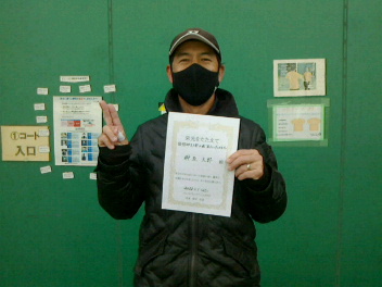 2022.01.31 男子シングルス 大熊テニスクラブ 01/30(日) 男子シングルス 初級 優勝<大熊テニスクラブ> 副島甲吉さん、優勝おめでとうございます(^O^)【優勝者コメント】今度は初中級で優勝目指します! 拍手0