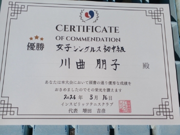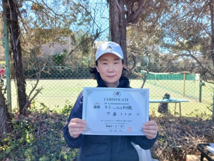 2026.03.16 女子シングルス トマトインドアテニスクラブ 03/16(月) 女子シングルス 初中級 優勝<トマトインドアテニスクラブ> 川曲朋子さん、優勝おめでとうございます(^O^) 【優勝者コメント】 ありがとうございました! 拍手6