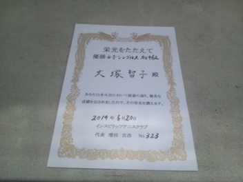 2014.06.21 女子シングルス インスピリッツテニスクラブ 06/20(金) 女子シングルス 初中級 優勝<インスピリッツテニスクラブ> 大塚智子さん、優勝おめでとうございます(^O^)【優勝者コメント】勝ててよかったです! 拍手0