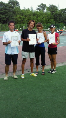 2010.08.16 団体戦 08/15(日) 女子団体戦 初級 賞品付 優勝<富士見市運動公園> まみ&あやさん(加藤磨水子さん、常世田礼子さん)、優勝おめでとうございます(^O^) 【優勝者コメント】 加藤さん 「常世田さんと組んで勝ち上がれて嬉しいです!」 常世田さん 「要所で加藤さんが決めてくれました。」 拍手0