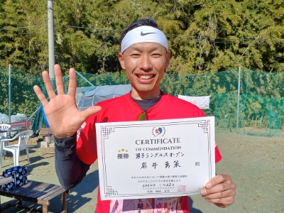 2026.01.23 男子シングルス トマトインドアテニスクラブ 01/23(金) 男子シングルス 初級 優勝<トマトインドアテニスクラブ> 岩井健心さん、優勝おめでとうございます(^O^) 【優勝者コメント】 Thank you ☆ 拍手12
