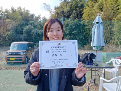 2026.01.23 女子シングルス トマトインドアテニスクラブ 01/23(金) 女子シングルス 初中級 優勝<トマトインドアテニスクラブ> 谷川春菜さん、優勝おめでとうございます(^O^) 【優勝者コメント】 楽しく参加させていただきました。 ありがとうございました。 拍手1