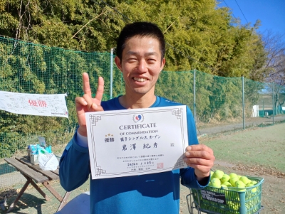2026.01.20 男子シングルス 東大宮テニスクラブ 01/20(火) 男子シングルス 中上級 優勝<東大宮テニスクラブ> ニシヤマAさん、優勝おめでとうございます(^O^) 【優勝者コメント】 風強すぎ。 拍手3