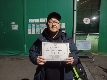 2026.01.21 男子シングルス トマトインドアテニスクラブ 01/21(水)男子シングルス 初中級 優勝<トマトインドアテニスクラブ> 増田剛之さん、優勝おめでとうございます(^O^) 【優勝者コメント】 精進します! 拍手2
