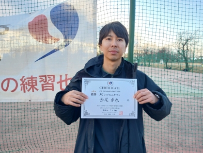 2026.01.24 男子シングルス 大宮運動場 01/24(土) 男子シングルス オープン ※さいたまスポーツコミッ ション主催Sフィールドリーグ 優勝<大宮運動場> 西尾卓也さん、優勝おめでとうございます(^O^) 【優勝者コメント】 久しぶりに優勝できて嬉しいです! 拍手5