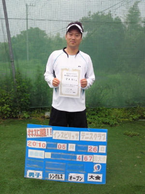 2010.05.28 男子シングルス インスピリッツテニスクラブ 05/28(金) 男子シングルス オープン 優勝<インスピリッツテニスクラブ> 佐々政洋さん、優勝おめでとうございます(^O^) 【優勝者コメント】 天気がよかったなあ?!! 拍手0
